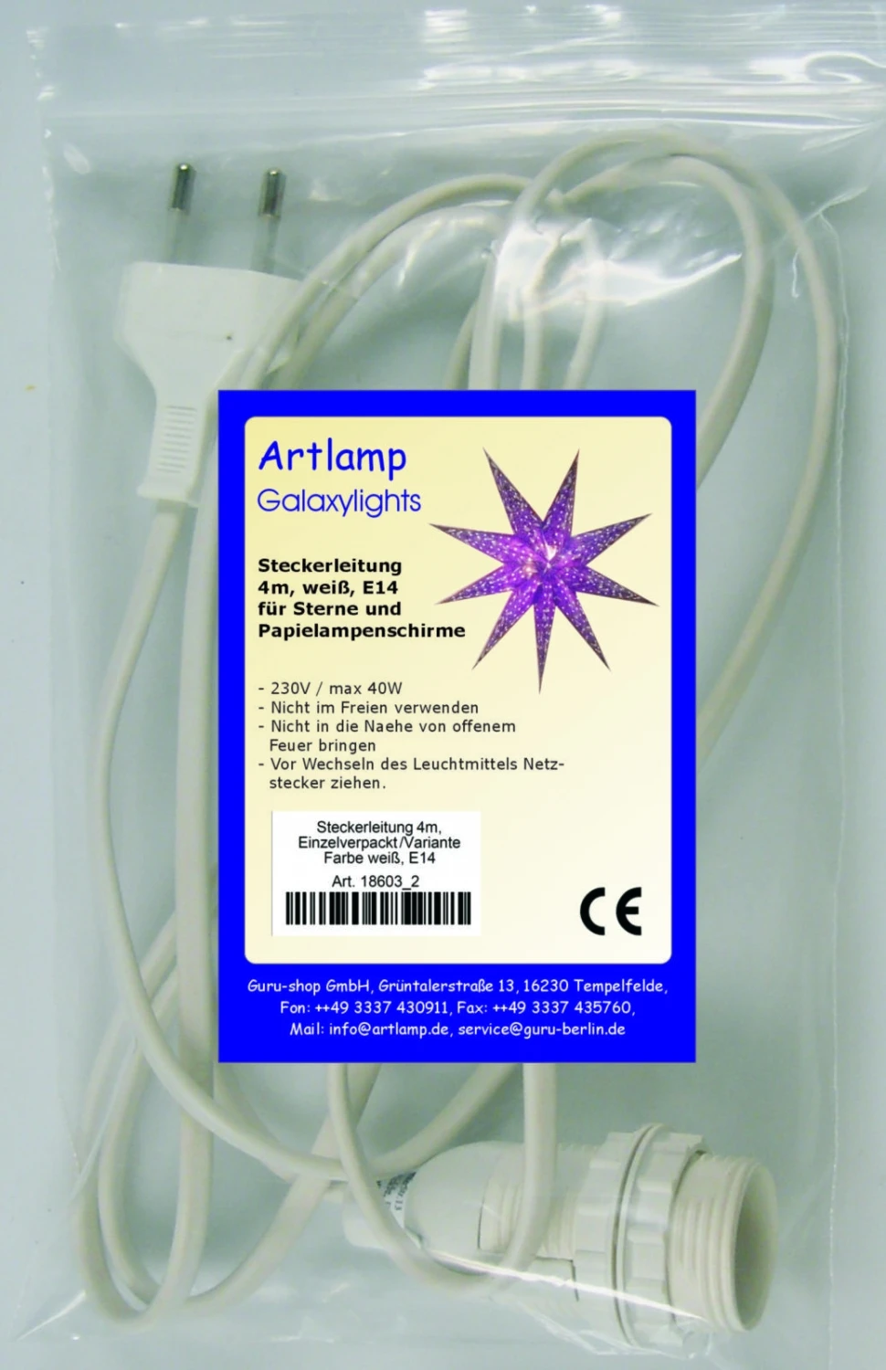 Die Leitungen werden in Druckverschlussbeuteln einzeln verpackt geliefert.