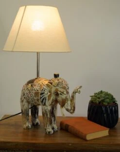 Tischlampe / Tischleuchte, In Bali Handgemacht Aus Naturmaterial – Modell Elefant – 55x38x30 Cm