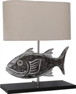 Tischlampe / Tischleuchte, In Bali Handgemacht Aus Naturmaterial – Modell Fish – 43x35x15 Cm
